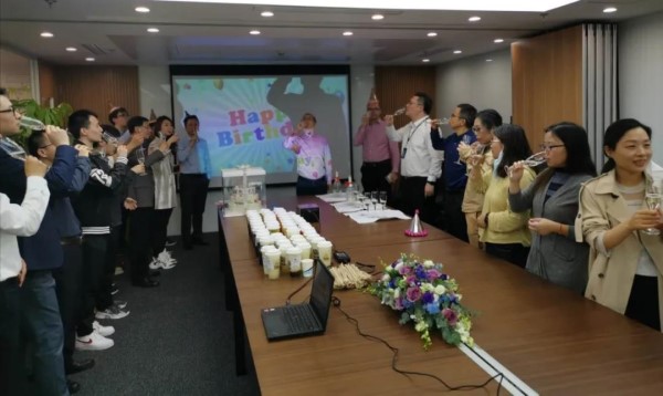 2020年4月29日下午,活動在聯合水務集團上海總部新增新裝的南豐城16樓辦公室舉行。聯合水務集團董事長兼總裁俞偉景先生、聯合水務集團高級副總裁劉猛先生、聯合水務集團高級副總裁陳樵先生、聯合水務集團高級副總裁兼CFO James Beeson先生、上海總部全體常駐員工、孟加拉項目公司部分員工共同參與了此次慶典暨生日慶祝活動。