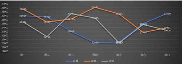 如果我們需要對每個區域的一定時間段用水變化進行對比分析,就要用到折線圖。如圖二