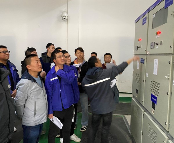最后,張工帶領學員們來到了一二期配電室,告知了如何在用電故障時,一二期值班室和三四期值班室人員協同應急處理故障,恢復生產。