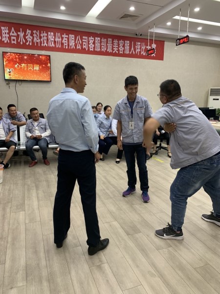 活動(dòng)開始,首先陳美菊經(jīng)理對(duì)于我們每位員工這半年來的業(yè)績給與了充分的肯定,在工作中體現(xiàn)了盡職盡責(zé),吃苦耐勞,團(tuán)結(jié)友愛的協(xié)作精神。在知識(shí)競答環(huán)節(jié)中,涉及到了綜合業(yè)務(wù)能力的展現(xiàn)和公司規(guī)章制度的梳理和解答。。經(jīng)過競答環(huán)節(jié),拔得頭籌的是營業(yè)廳胡婧和抄表員黃雷。作為客服部的一員,在業(yè)務(wù)上做到精益求精,是每個(gè)員工的基本要求,營業(yè)廳是公司的對(duì)外窗口,妝容美麗得體和著裝統(tǒng)一是服務(wù)客戶的基本禮儀,而抄表員作為外勤服務(wù)方,除了定時(shí)定量完成抄收任務(wù)的同時(shí),安全問題也成了重中之重。在心有靈犀活動(dòng)中,每位客服人員都積極參與,配合默契,相得益彰,這也充份體現(xiàn)了我們客服人員的團(tuán)結(jié)友愛,團(tuán)結(jié)產(chǎn)生力量,齊心協(xié)作精神。
