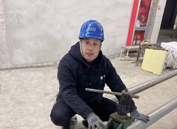 (圖1:單江耐心為新員工講解施工過程中要點)