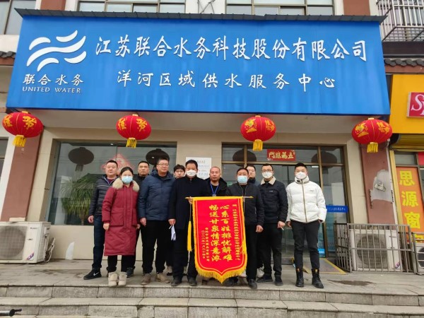 新年伊始,門楣載福。江蘇聯(lián)合水務(wù)科技股份有限公司于1月中旬收到宿遷市水利局表?yè)P(yáng)信贏得開年頭彩,緊接著又被洋河股份授牌“2021年度戰(zhàn)略合作優(yōu)先供應(yīng)商”,1月22日公司再添新佳績(jī),榮獲宿城區(qū)洋北辦事處“2021年度企事業(yè)單位先進(jìn)集體”表彰,洋河新區(qū)倉(cāng)集辦事處企業(yè)代表贈(zèng)送“心系百姓排憂解難,暢送甘泉情深意濃”的錦旗,新春開門紅,公司捷報(bào)頻傳,實(shí)現(xiàn)2022良好開局。
