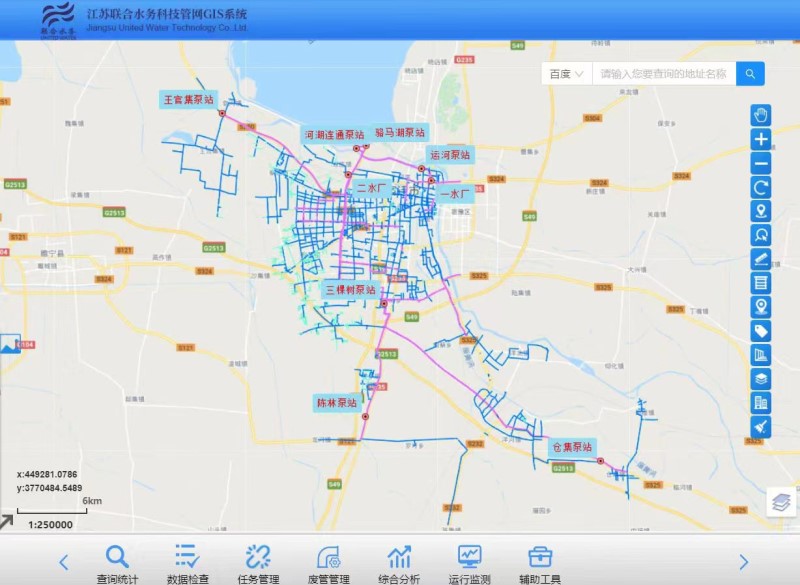 智慧化建設從來都不是一蹴而就的,隨著供水系統不斷延伸,供排水體系也變得十分復雜和龐大。以GIS系統建設為例,前期需要采集相應的地理與要素數據來幫助構建后期可視化“地圖”,這是一項并不輕松的“體力活”,工作人員用“走街串巷”的方式摸清地下管線類型、管徑、材質、埋深、起止、走向以及管線之間連接關系,并對管線及管配件關鍵點加以絕對坐標定位,最終完成數據的探測、采集、坐標轉換、質檢、入庫等工作,管網數字化入庫建設工作還需要技術、管網運維、管網建設等多個團隊通力配合,系統上線之后,需要歷經多次優化升級,來提升前端數據采集的多樣性和應用端功能的豐富性。