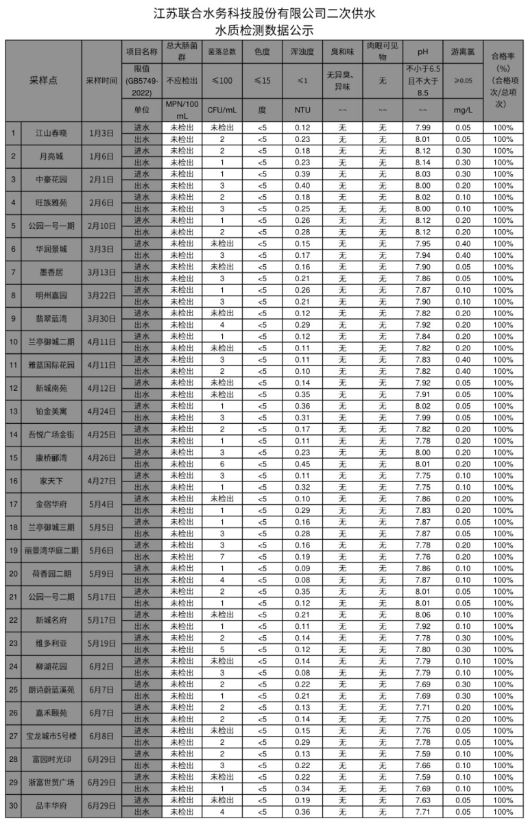 二次供水半年公示(2023上半年)