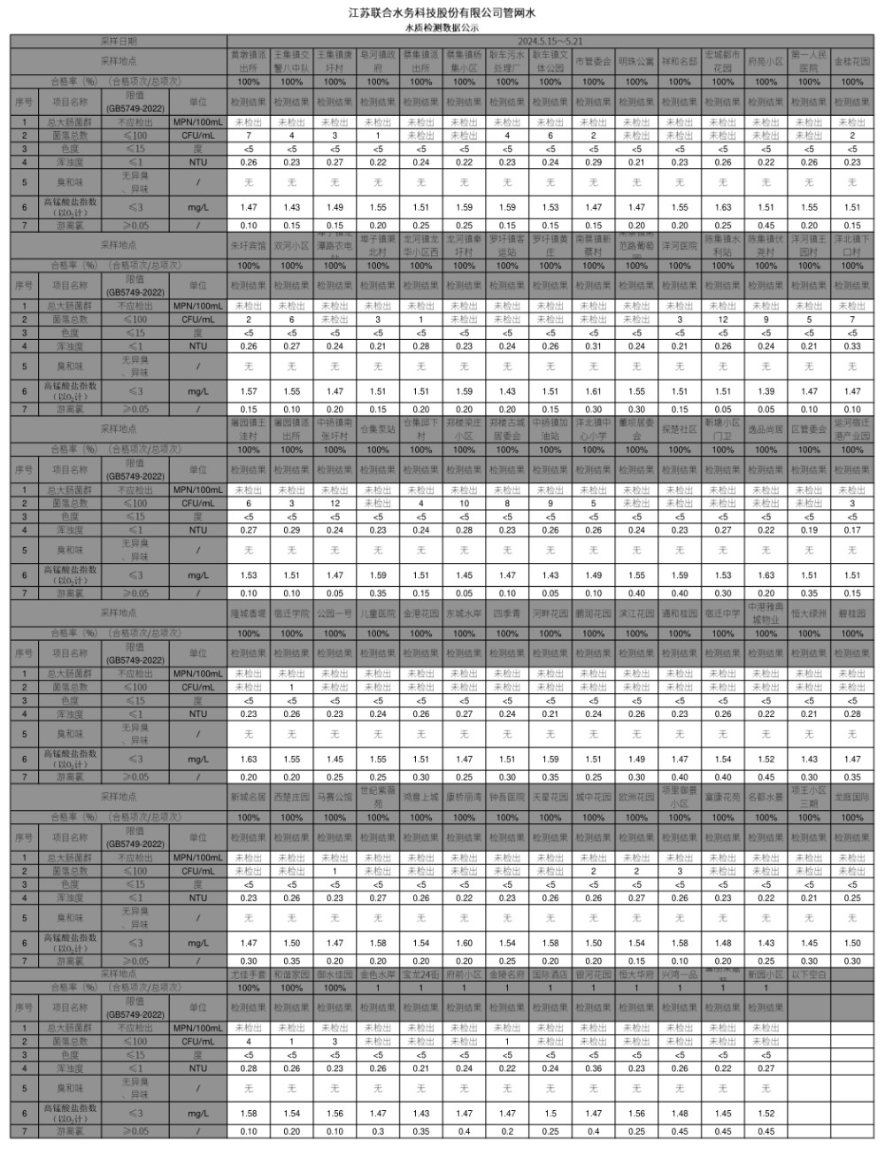 管網水半月公示(2024年5月下半月)