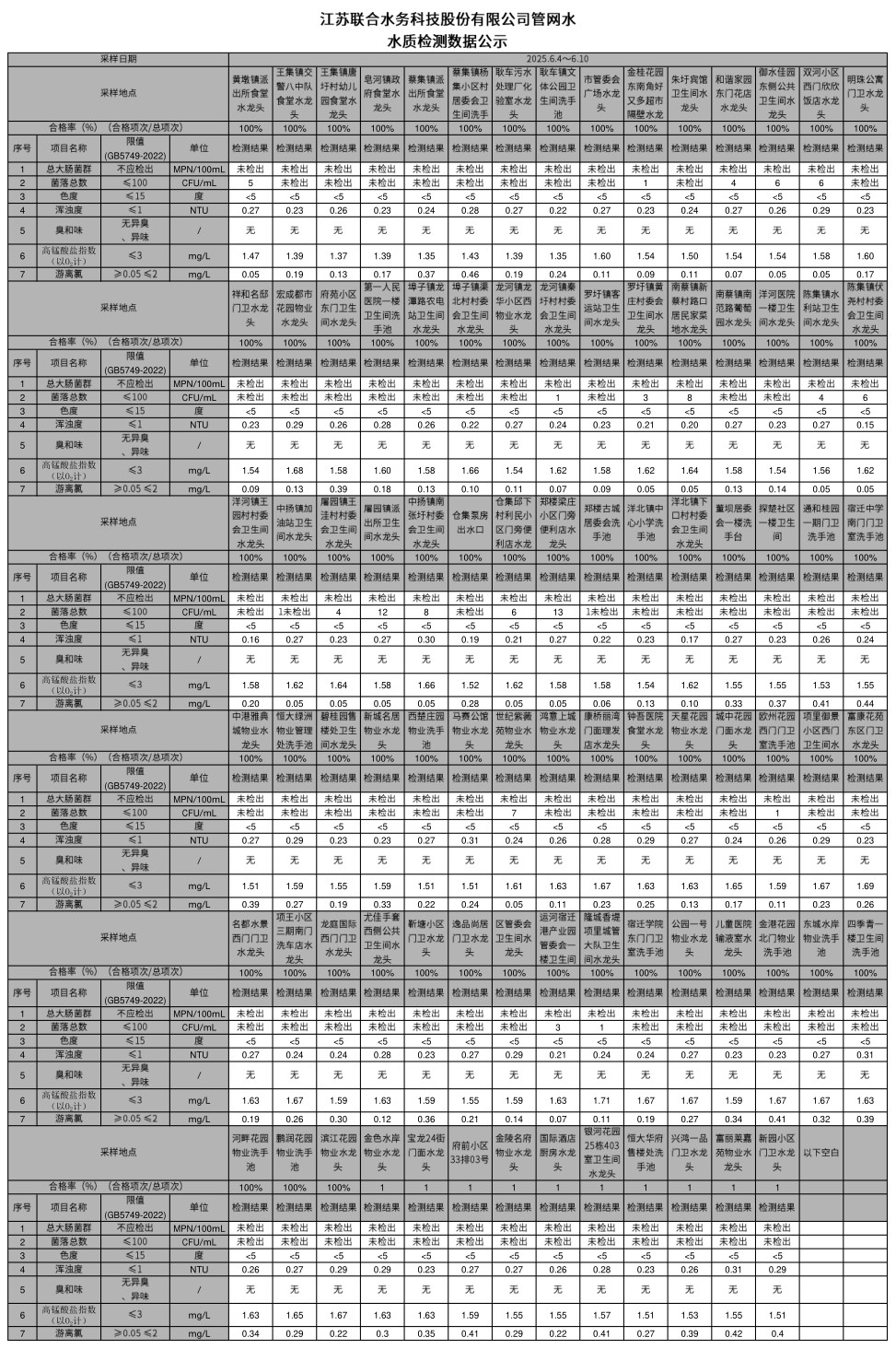 管網水半月公示(2025年6月上半月)