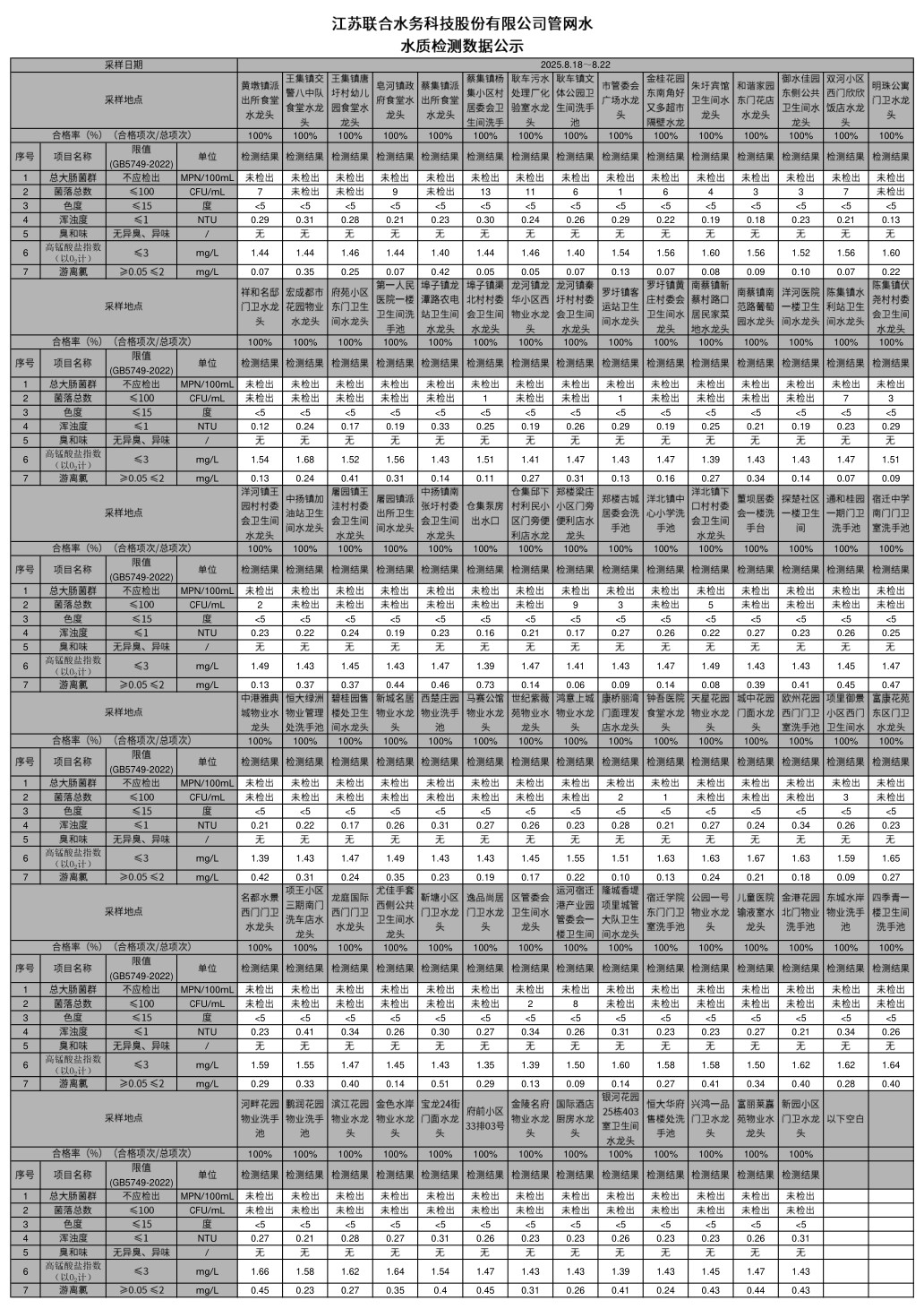 管網(wǎng)水半月公示(2025年8月下半月)