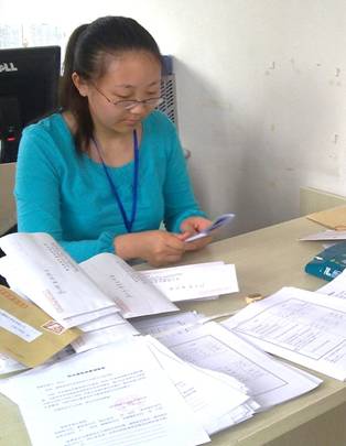 圖一、工作人員整理調查信函。
