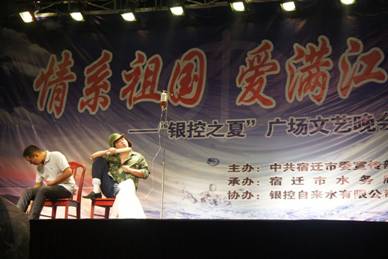 8月27日晚,為慶祝建黨90周年,宿遷市人民廣場(chǎng)隆重舉辦了 “《情系祖國(guó),愛(ài)滿江河》——銀控之夏”大型文藝活動(dòng),宿遷市副市長(zhǎng)田洪、秦正寶出席了出席活動(dòng),宿遷市水利系統(tǒng)及宿遷銀控的大部分員工到場(chǎng)觀看。