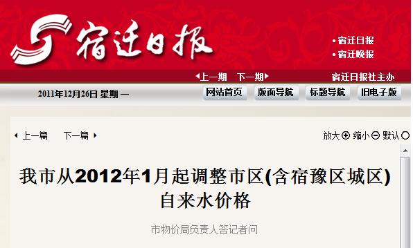 我市從20121月起調(diào)整市區(qū)(含宿豫區(qū)城區(qū))自來(lái)水價(jià)格