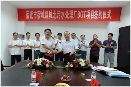 2012年8月22日,聯合水務與宿遷市宿城新區管委會舉行了宿遷市宿城新區城北污水處理廠BOT項目簽約儀式。宿城新區城北污水處理廠位于宿遷市宿城區,預期污水處理規模4萬噸/日,項目總投資約1.1億元,其中一期建設規模為1.5萬噸/日,計劃于2013年8月投產運行。這個項目的建成將有效處理宿城區的生活污水、工業廢水等,減少污水對環境的污染,對改善生態環境、提升城市品位和促進經濟發展具有重要意義。