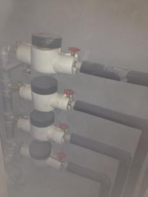 水表防凍也是施工中較為重要的一項工作,主要分為室外表井的防凍和高層管道井的防凍。室外水表井中的水表雖然低于自然地面30cm,位于凍土層下面,但是水表井中沒有任何覆蓋物,因此每年都有很多水表還沒有投入使用便已經凍壞。為此,我們在水表安裝完畢試水合格之后,將水表井中填滿黃沙至水表頂部,既不影響抄表,又能防止凍壞,一勞永逸。高層管道井中的水表防凍是個新課題,但我們的做法或許也得到了滿分。水表本身加裝保溫套、表前和表后的管道均裹上保溫棉,這樣的裝扮足以應付寒冷的冬季了。