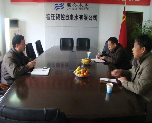 20121217日上午,黑龍江省訥河市水務(wù)局任副局長及訥河自來水公司韓總經(jīng)理一行來到宿遷,就自來水公司改制有關(guān)事項進行考察交流。