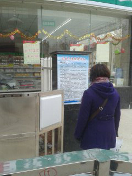 客戶在仔細閱讀海報內容,準備回家給水表“穿棉衣”。