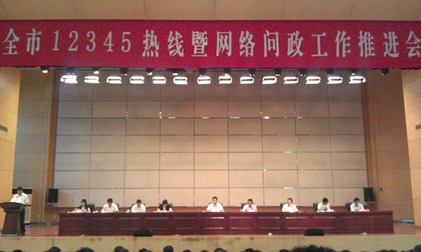 會議首先宣讀了市委書記藍紹敏,市委副書記、代市長王天琦對12345熱線和網絡工作的重要批示。然后政府辦領導就“2013年上半年365便民服務平臺運行情況及存在問題”進行通報,通報中還提出下半年工作的要求。宿豫區、宿城區、沭陽縣、市軟建辦和市電子政務中心的領導分別做了表態發言。最后王益副市長做了重要批示,要求各相關單位必須重視此項工作的開展,努力提升各項工作質量,盡量達到市民滿意,將藍書記關于“提升資源整合效果、提升便民服務水平、提升決策參考價值”的的重要批示真正落到實處。