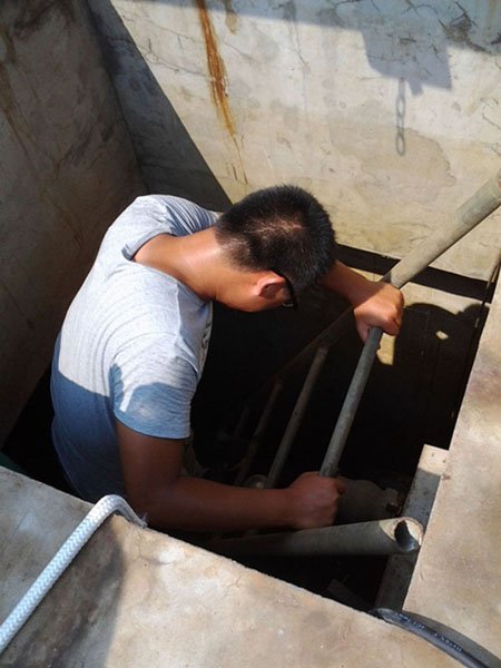 (圖1:二次供水服務(wù)部人員正在進(jìn)入水池)