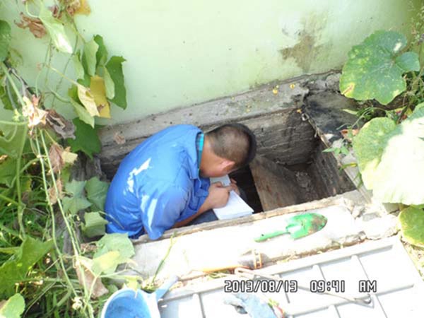 (圖:抄表員在深坑內抄表)