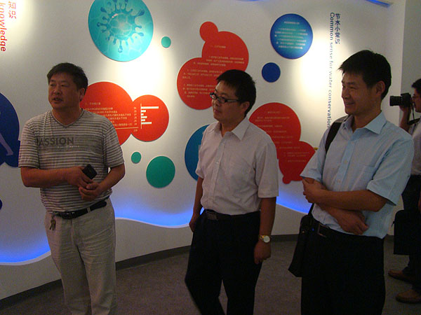 2013年9月10日,宿遷市節(jié)水教育基地創(chuàng)建小組4位領(lǐng)導(dǎo)專程赴水文化展示館指導(dǎo)創(chuàng)建工作。在檢查中各位領(lǐng)導(dǎo)對水文化展示館科學(xué)的結(jié)構(gòu)布局、詳實(shí)的節(jié)水資料、先進(jìn)的電教設(shè)備給予了很高的評價(jià)。特別是能采用先進(jìn)的聲、光、電等多媒體設(shè)備向公眾演示節(jié)水科普知識,能夠給參觀者以直觀的感受,增強(qiáng)節(jié)水體驗(yàn)性。但同時(shí),各位領(lǐng)導(dǎo)也對場館的改進(jìn)提出了針對性意見,認(rèn)為在實(shí)物與節(jié)水的結(jié)合、宿遷水系資料完善等方面仍有一定的提升空間。