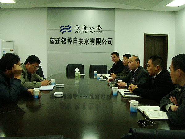 隨后,夏總率公司分管人事行政、生產技術、運營管理三位副總經理和聯合市政工程有限公司曾真總經理在三樓會議室向鄭局長匯報工作。夏總向鄭局長介紹了宿遷銀控自來水有限公司近幾年的生產、建設情況以及未來幾年的發展規劃,并著重介紹了洋河新區供水工程和市區區域供水規劃。鄭局長表示,應感謝聯合水務集團對宿遷供水事業的支持,自來水公司在洋河區域供水項目上貢獻很大,不僅投入大量的人力、財力,更是克服了通水前的種種困難,全面保障了洋河新區供水服務。同時,鄭局長也指出,自來水公司作為企業,投入也應有合理的產出,市水務局對此予以支持。