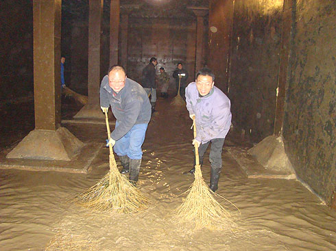 按照公司計劃,124日,調(diào)度中心和制水部抽調(diào)10余名工作人員,對二水廠的清水池進行了清理。截止至12422時,清洗工作已順利完成,經(jīng)水檢中心檢測,清水池內(nèi)的出水濁度為<0.5NTU,其他指標均達到出廠水要求時,便正式與另一組清水池并網(wǎng)運行。