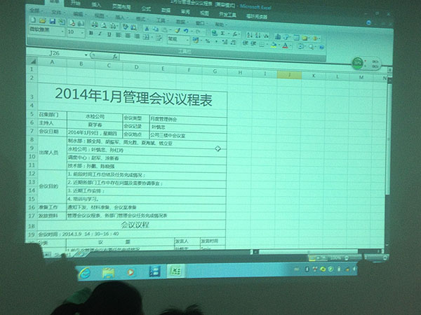 近日,宿遷公司生產部門在水檢公司組織下召開了2014年首次生產技術管理會議,此次會議已是宿遷公司生產部門召開的第八次生產技術管理會議。生產技術會議是由技術部、水檢公司、調度中心、制水部幾個生產部門輪流在每月10日前組織召開,會議由生產副總主持,生產部門主管以上人員參加。會議旨在總結上個月工作生產情況、協調解決影響水質、供水安全的問題、下一階段的工作部署以提高管理的視頻講座、辦公軟件的應用為主。