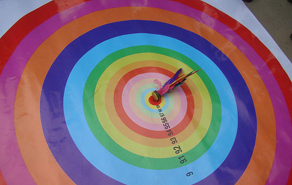 好嘛,事實證明盲拳能打倒老師傅,她上了場,幾乎沒見瞄準(可能她也就是瞎踢),啪的一聲,毽子干凈利索地落到十環上。現場如同炸開了鍋,有十環的,可是哪有這樣干脆的十環啊?到底眼神好還是腳功好還是運氣好?她一個十環之后死活不肯再踢第二腳,說:一腳定江山,夠了。