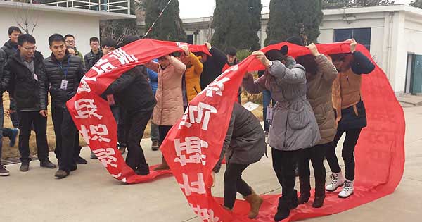 先打破僵局的是小夏總和吳銘經理這一組,他們配合不錯,健步如飛走到終點只用了不到13秒,這下,大家發現,關鍵其實是在后面那一位身上,前面一位盡管放開跑,后面只要緊緊跟上,不讓呼啦圈受力就不會斷開了。于是,剩下的幾組有了驚人表現,全部采取女在前、男在后的方式,用“撒丫就跑”的速度,一對比一對跑得快,最終郁莉經理和宋衛偉兩個僅7秒多就跑完全程,大家樂壞了,這對組合完全是“百米賽跑”的速度呀,真應該在呼啦圈的同時設置跨欄障礙。
