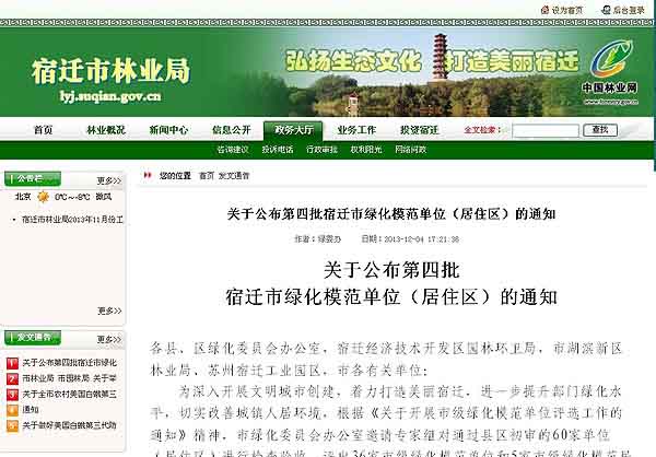 (圖3:宿遷市綠化模范單位)