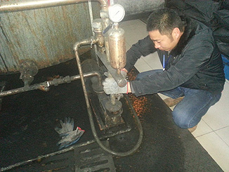 (圖2:工作人員在對加酸設(shè)備進(jìn)行檢查)
