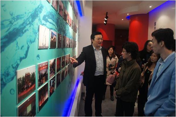 (圖4:劉總在水文化展示館向考察團成員介紹宿遷公司的改制情況)