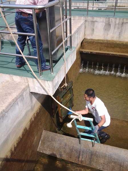 宿遷公司完成一水廠送水泵房4號水泵和二水廠2號砂濾池閘門板維修工作