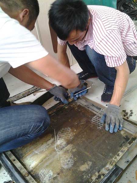 同時,5月29日上午,機電設備部對二水廠2號砂濾池的閘門板進行了維修。之前制水部發現2號閘門板有漏水現象,經維修人員拆卸后發現閘門板的邊緣橡膠皮墊長時間的開啟摩擦致局部磨損,從而導致密封不嚴。經過更換橡膠皮墊、禁錮、安裝,經測試后漏水明顯減小,密封效果達到預期目標、。