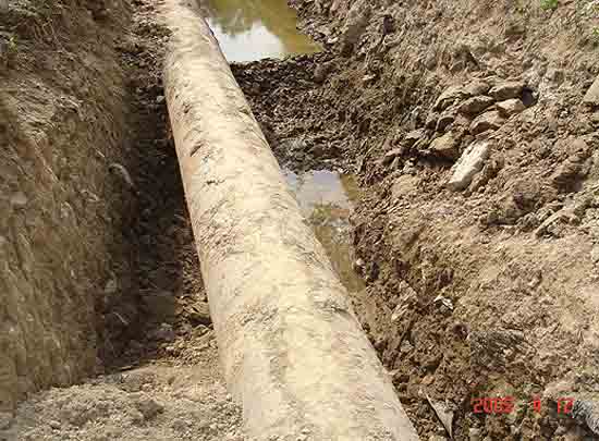 圖為通往新區(qū)的DN600管道,該工程被作為當(dāng)年“市政府為民辦實(shí)事”之一。