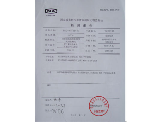 2010年,公司提前兩年達到《生活飲用水衛生標準》(GB/5749-2006)106項水質檢測標準。