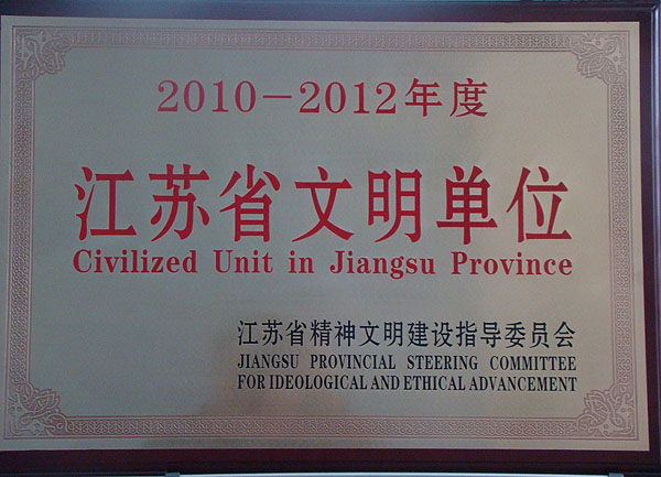 年江蘇省文明單位”的榮譽(yù)稱號(hào)