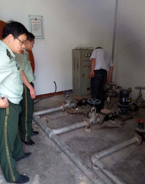 (圖2:丁經理、張處長在查看樓下加壓泵房現狀)