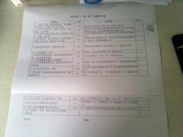 此次競賽分別圍繞設(shè)施、設(shè)備、安全防護(hù)用品、衛(wèi)生環(huán)境,工作制度執(zhí)行情況、安全意識等競賽內(nèi)容進(jìn)行打分,由陳總帶領(lǐng)的考核小組進(jìn)行每周不定期的監(jiān)督檢查,對檢查中發(fā)現(xiàn)的問題及時通報相關(guān)負(fù)責(zé)人,進(jìn)行整改。