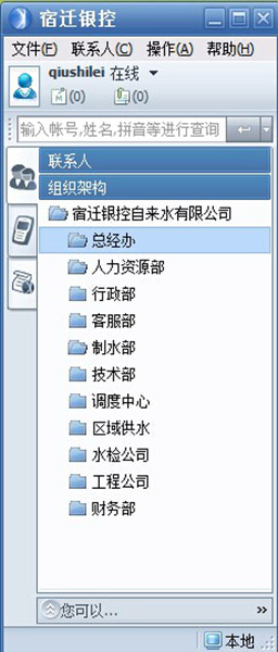 可見(jiàn)騰訊通的功能很多,但是我們需要用的最主要的功能就是即時(shí)通訊,大文件傳輸還有系統(tǒng)消息群發(fā)。而它還有一個(gè)特點(diǎn)就是根據(jù)企業(yè)自身的組織架構(gòu)形成單獨(dú)(或者是集團(tuán)分公司之間的)通信系統(tǒng)。我模擬部署了一個(gè),圖1就是一個(gè)基本的界面。