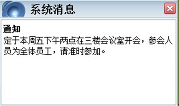 圖3是一個(gè)系統(tǒng)信息的發(fā)布畫面,可以根據(jù)需要發(fā)布給相關(guān)人員,并且能夠通過(guò)設(shè)置信息的停留時(shí)間以及時(shí)引起關(guān)注。