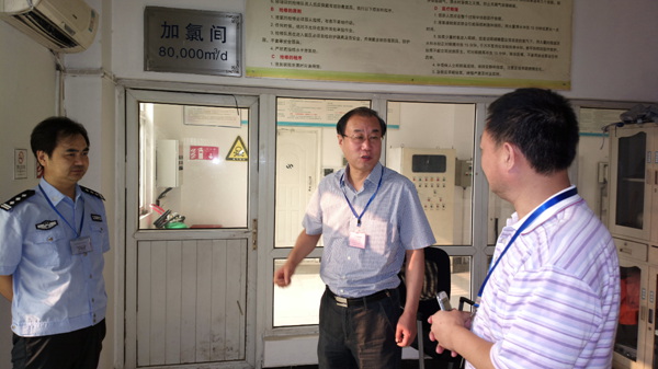 在加氯操作間,劉市長詳細詢問了加氯操作流程并檢查了應急防護器具。隨后,陳總向劉市長進行匯報 “公司十分注重安全生產及保衛工作,在現有安全管理的基礎上,按照HSE(健康、安全與環境管理體系)系統地改進安全管理措施,完善安全管理體系建設。同時,針對‘青奧’特殊時期,公司增加安保人員數量,嚴格執行領人出入制度,加大安全檢查力度,確保安全工作無死角。”劉市長聽后表示贊許并表示“供水工作無小事,你們責任重大!今天現場檢查后,我就放心了!希望你們繼續強化供水及安全保衛工作,全力確保 ‘青奧’期間的供水安全”。