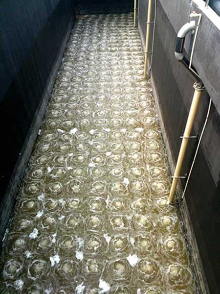 近日,城北污水處理廠聯系設備廠家進廠對生化系統曝氣設備進行調試,為城北污水處理廠正式進水做好準備。當廠家到廠之后,啟動鼓風機,發現由于設備長時間處于未運行狀態,部分曝氣盤現已不能正常工作。為配合廠家檢修,縮短調試周期,城北污水處理廠員工則主動下池工作,并不時的詢問曝氣盤的日常保養維護原則。協助廠家維修過程中,員工們不僅從理論上熟悉了曝氣盤的正確使用方法,同時能夠自行動手檢修,這將為日后維修問題曝氣盤提供一次很好的實踐機會。