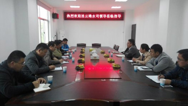 10月27日下午,連云港市自來水有限責任公司副總經理王斌攜技術部部長張偉富、工程部部長仝中軍以及下屬的連云港市源通市政工程處經理李軍、連云供水公司廠長顧利軍等人赴宿遷公司開展工程建設設計、圖審、招標、發包(施工單位的確定)、施工、驗收和結算等工程事宜的考察交流。宿遷公司區域供水項目總監葉峰受公司總經理夏承光的委托帶領工程公司相關人員熱情歡迎王總一行。
