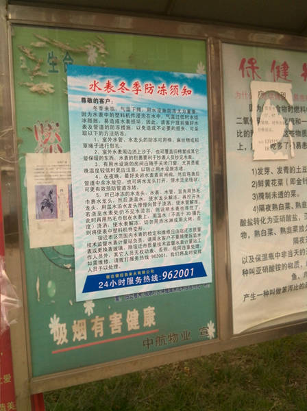 (圖:工作人員張貼《水表冬季防凍須知》)