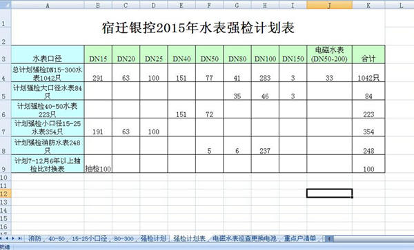 根據(jù)部門目標(biāo),水表檢定中心在2015年1月份制定了市區(qū)水表強檢計劃。目前,計劃已全面完成并通過審核。