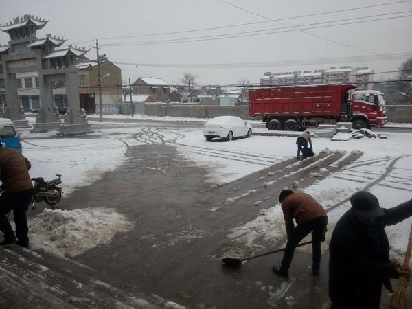 到公司的時候,大廳門前也是白皚皚的一片。可是最近正值繳費(fèi)期,每天來繳水費(fèi)的用戶很多,為了方便大家出行,我們來不及欣賞眼前的美景,都拿起工具,準(zhǔn)備“摧毀”這副美景。大家有的拿鐵鍬,有的拿掃帚,可是進(jìn)度還是有些慢了。最后,不知是誰找來廢舊的木板,直接用木板把鏟起的積雪推到遠(yuǎn)處,不一會就清掃出了一大片。有了效率,大家干的更是帶勁,就這樣在大家默契的配合下,掃雪進(jìn)度明顯提升。雖然路面已經(jīng)掃干凈,但為了提醒用戶,我們又做了一個“小心路滑”的警示牌,讓前來繳費(fèi)的用戶能夠感到我們溫暖的服務(wù)。