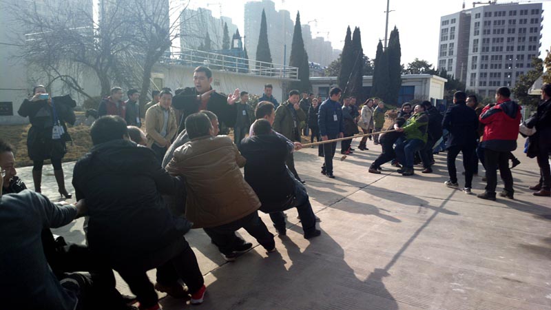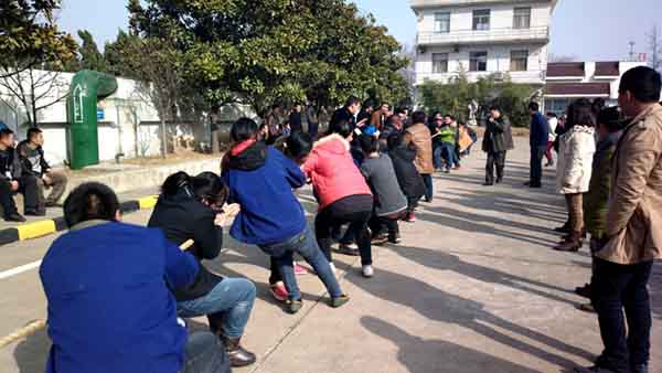 春節前,宿遷公司舉辦了拔河活動,和往年一樣今年共有四個隊伍參賽,每隊15人。比賽采取三局兩勝晉級賽,經過緊張的角逐,最終客服聯隊技高一籌以較大的優勢獲了第一名,工程公司聯隊獲得第二名,生產技術聯隊和行政污水聯隊并列第三名。