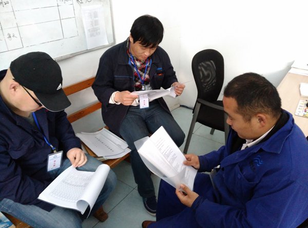 山西新絳縣生態環境工程有限公司是聯合水務集團2014年投資新建的公司,新絳公司現在基礎設施、設備已經基本全部安裝完成,為了更好更快的投入運行,新絳公司領導安排設備維修管理人員到宿遷公司機電設備部進行設備方面的考察交流學習。