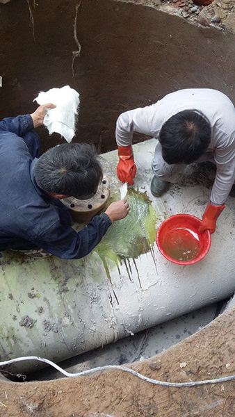 6月10日12時左右,歷時5小時,由維修員李鵬、韓江負責停水等工作的兩處管側漏水順利搶修完畢。另一處管底漏水,因管線長、管底深、余水大,搶修難度大且因漏水方位原因必須帶水搶修。因周邊樹木較多,大發電機無法進入,為了將管底余水排出,只能使用四臺小水泵進行抽水,挖機同時向外挖水,從10日16時開始,維修員奮戰近2天一夜,于11日23時30分左右終于將此漏點搶修完畢。