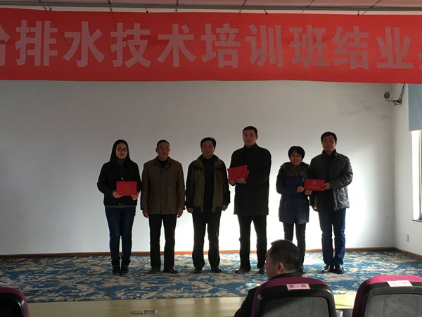 宿遷公司與揚州大學環境科學與工程學院達成的《給排水專業知識》培訓協議,從2015年6月26日開班至12月18日,共144課時的培訓,于12月25日順利結業。揚州大學環境科學與工程學院鄢碧鵬副院長、喬慶云副教授、陳建華主任、宿遷銀控自來水公司管委會領導、以及47名學員參加了結業典禮。