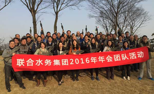 在結(jié)束為期一天半的的工作會議后,2月20日下午,與會人員參加了聯(lián)合水務(wù)2016年年會團隊活動-真人CS野戰(zhàn)活動。